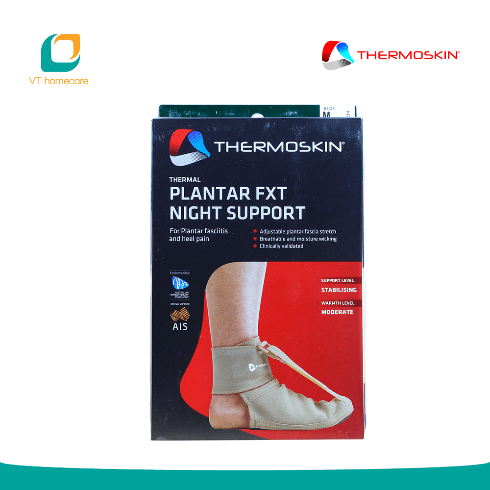 Băng kéo chống căng cơ bàn chân (Plantar FXT Night Support) của Thermoskin có phần băng co giãn kéo giữ phần các ngón chân hướng lên trên. Điều trị chứng tê chân khi ngủ dậy do máu tuần hoàn kém.